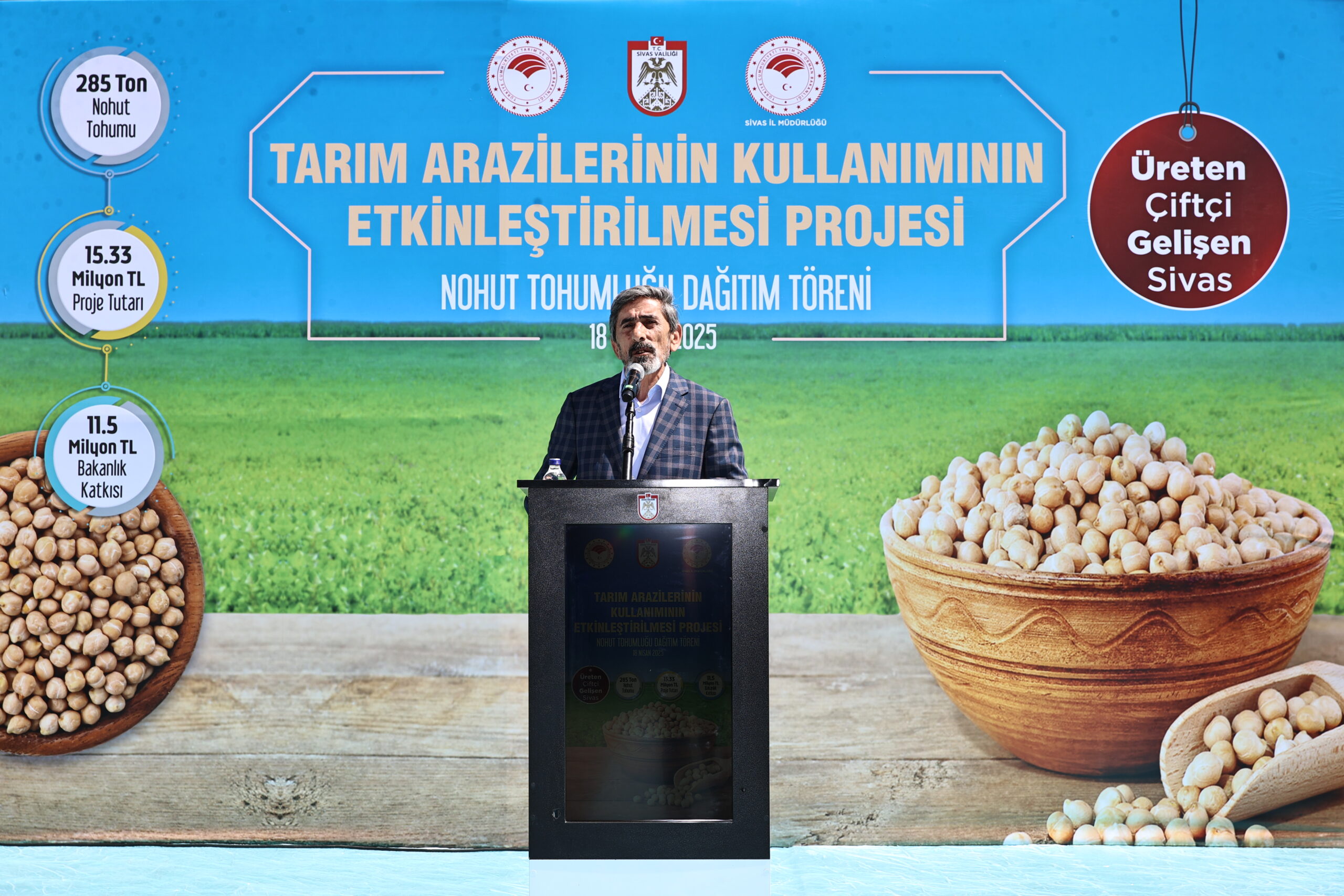 Tarımda önemli bir potansiyele sahip olan Sivas’ta çiftçilere destekler sürüyor. İl Tarım ve Orman Müdürlüğü'nce tarım arazilerinin kullanımının etkinleştirilmesi projesi kapsamında, 750 çiftçiye verilmek üzere 285 ton nohut tohumu dağıtımı, düzenlenen törenle gerçekleştirildi. Programa Sivas Valisi Yılmaz Şimşek, Tarım ve Orman Bakanlığı Bitkisel Üretim Genel Müdür Yardımcısı İhsan Emiralioğlu, İl Genel Meclisi Başkanı Mehmet Şarkışla, İl Tarım ve Orman Müdürü Seyit Yıldız, Sivas Ziraat Odası Başkanı Hacı Çetindağ, il protokolü, çiftçiler ve çok sayıda davetli katıldı. Ziraat Odası Başkanı Hacı Çetindağ’ın açış konuşmasıyla başlayan programda İl Tarım ve Orman Müdürü Seyit Yıldız, katılımcılara nohut dağıtımı projesinin detayları hakkında bilgi verdi. - Nohut Tarımsal Potansiyele Katkı Sağlıyor Tarım ve Orman Bakanlığı Bitkisel Üretim Genel Müdür Yardımcısı İhsan Emiralioğlu, yaptığı konuşmada; Tarım ve Orman Bakanlığının tarımsal üretim planlamasından bahsederek,  “Nohut üretiminin Sivas’ta sağlanması ülkemizin tarımsal potansiyeline ve geliştirilmesine katkı sağlayacak” dedi. - Çiftçilerimizin Her Zaman Yanındayız Zirai don olayı nedeniyle ürünleri zarar gören çiftçilere geçmiş olsun dikellerini ileterek sözlerine başlayan Vali Yılmaz Şimşek ise “Emekle, alın teriyle üretim yapan kıymetli çiftçilerimizin her zaman yanındayız. Devletimiz, tüm imkanlarıyla yaraların sarılması için gerekli çalışmaları başlatmıştır. Rabbim her türlü afetten milletimizi ve memleketimizi korusun.” İfadelerini kullandı. Sivas’ın tarımsal potansiyeli ve üretimi ile öne çıkan bir kent olduğunu vurgulayan Vali Şimşek “Toplam 780 bin hektarın üzerinde işlenen tarım arazisi bulunan ilimizin ekonomisi büyük ölçüde tarım ve hayvancılığa dayanmaktadır. Şehrimizin ekonomik kalkınma rotası içerisinde, tarım ve hayvancılık bizim en çok önem verdiğimiz sektörlerin başında gelmektedir. Geniş ve verimli tarım arazilerini bünyesinde barındıran kırsalımızda farklı türde pek çok ürünün hasadı gerçekleştirilmektedir. İşte bunlardan birisi de kuşkusuz nohuttur” dedi. - 750 Çiftçi Faydalanacak 750 çiftçinin bu projeden faydalandığını ifade eden Vali Şimşek “Nohut, özellikle kuru tarıma elverişli topraklarımızda hem ekonomik getirisi hem de toprak sağlığı açısından oldukça kıymetli bir üründür. Bu proje sayesinde ilimiz genelinde nohut üretim alanlarının genişletilmesi, verimliliğin artırılması ve yerli tohum kullanımının teşvik edilmesi sağlanacaktır. Proje ile 20 bin dekarın üzerinde bir araziden 2 Bin tonun üzerinde bir nohut üretimi hedefliyoruz. 750 çiftçimiz bu destekten faydalanacak. Bu doğrultuda bizlere düşen de sizlerin üretim aşkını görerek motivasyonunuzu artırmak, Sivas’ımızı tarım ve hayvancılık alanında sizlerle birlikte çok daha iyi yerlere taşımak olacaktır. Çünkü bizler biliyoruz ki, Millî Tarım Politikalarımız ışığında hayata geçirilen bu ve buna benzer projeler ilimizi tarımda bir marka şehir konumuna taşıyacaktır” diye konuştu . - Üretimi Artırmak İçin El Birliği İle Çalışacağız Valilik olarak üretimi artırmak için el birliği ile çalışmalarına devam edeceklerini belirten Vali Şimşek sözlerini şöyle sürdürdü: “İnşallah Valilik olarak Sivas’ın bereketli topraklarını en verimli şekilde kullanmak, üretimimizi artırmak ve çiftçilerimizin refahını yükseltmek için elbirliğiyle çalışmaya devam edeceğiz. Ürün çeşitliliğimizi, hayvansal varlığımızı ve kaliteyi artırarak, bugün burada olduğu gibi çiftçilerimize destek olmayı sürdüreceğiz. Sivas’ın her karış toprağını, her bölgemizin ihtiyacını, üreticilerin önceliklerini analiz ederek, çiftçimizin üreticimizin yanında yer almaya,  onların ihtiyaçlarına cevap vermeye çalışıp, ilimizin bu potansiyelini en etkin şekilde kullanması amacıyla yoğun bir gayret içerisinde olacağız. Bu vesile ile Tarım Arazilerinin Kullanımının Etkinleştirilmesi Projesinin, tarımsal üretimimize katkı sağlayarak ilimiz ekonomisine ve kırsal kalkınmaya ivme kazandıracağına yürekten inanıyorum. Üretim yaparak hem gıda güvenliğimize önemli katkılar sağlayan hem de ekonomimize önemli miktarda katma değer katan çiftçilerimizi de tebrik ediyorum.” Program, çiftçilere nohutların dağıtılmasıyla ve nohut yüklü kamyonların ilçelere hareket etmesiyle sona erdi.