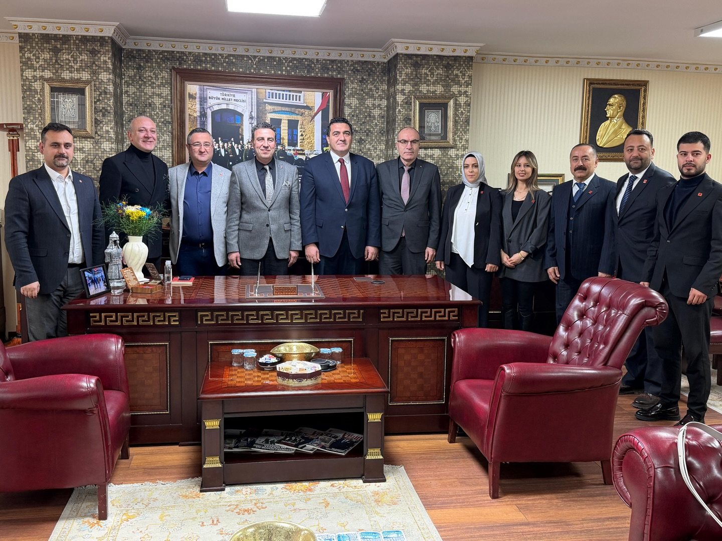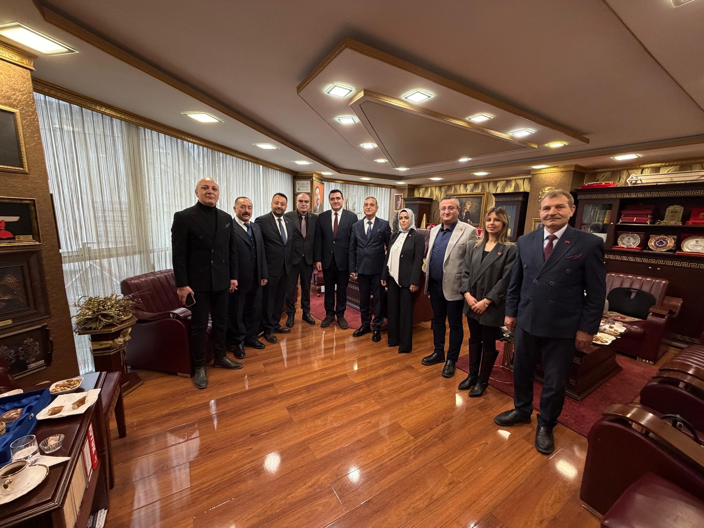 Sivas Esnaf ve Sanatkârlar Odaları Birliği (SESOB) Başkanı Hakan Demirgil’i; Sivas İl Yönetim Kurulu üyeleri, Merkez İlçe Başkanı Ergüder Sümbüloğlu ve yönetimi ile İl Gençlik Kolları Başkanı Baran Koçkanat’la birlikte ziyaret etti.