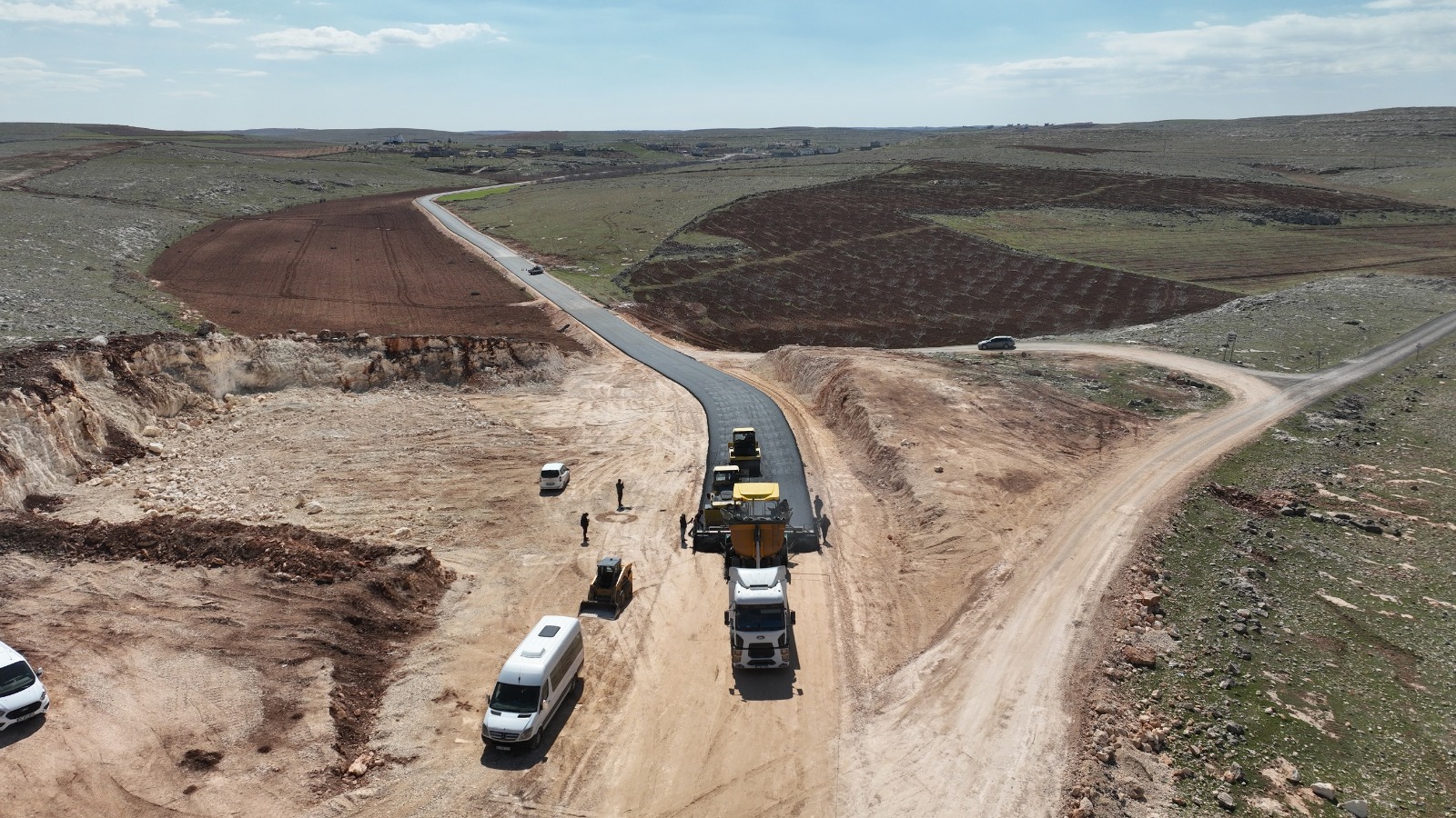 Şanlıurfa Büyükşehir Belediyesi, kırsal ulaşımı güçlendirmek amacıyla Halfeti–Bozova grup yolunda sıcak asfalt çalışmalarını sürdürüyor.