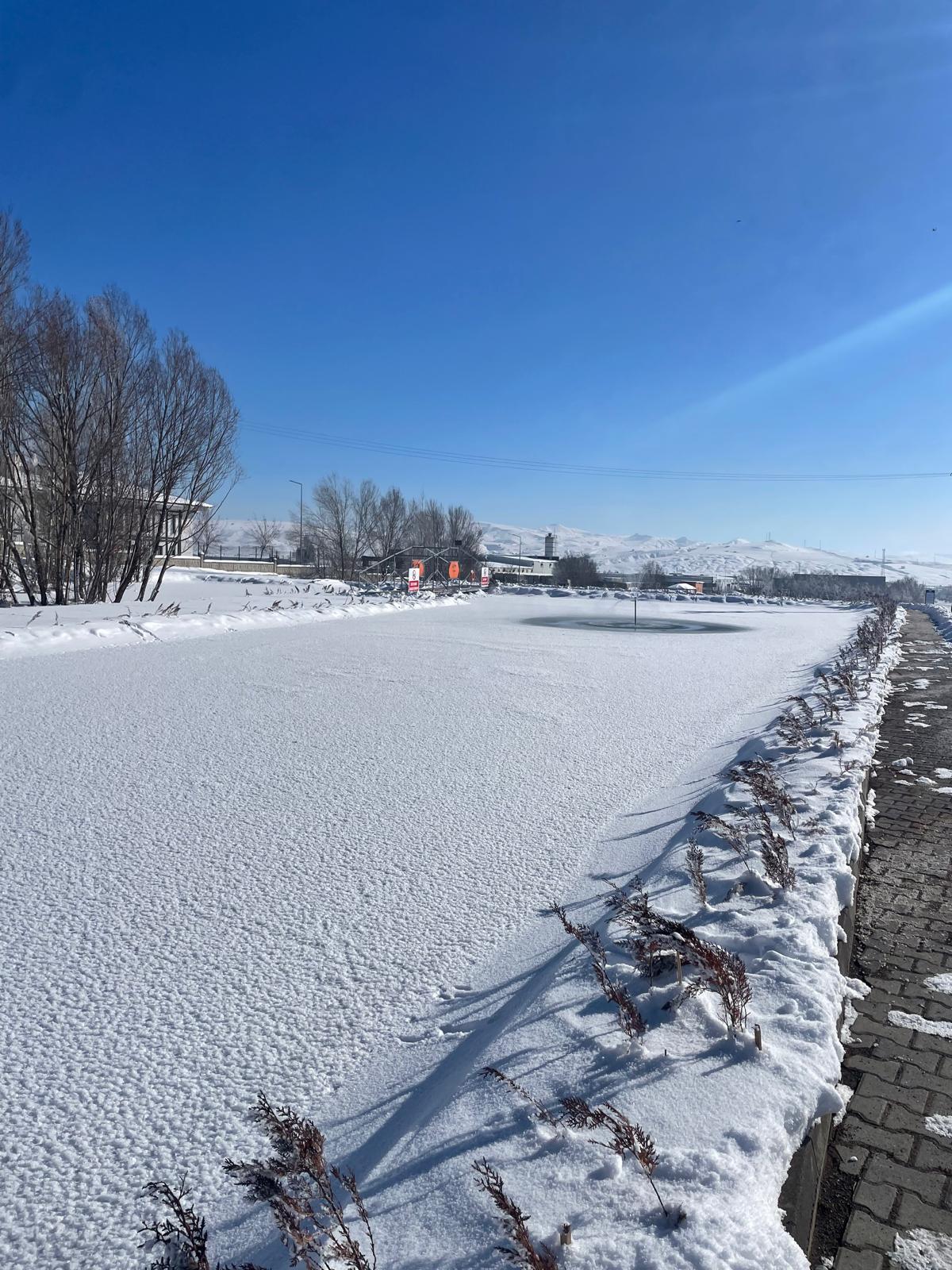 Gece saatlerinde sıcaklıkların eksi derecelere kadar gerilemesi sonucu gölet üzerinde kalın bir buz tabakası oluştu. Soğuk havanın etkisiyle ortaya çıkan manzara dikkat çekerken, gölet çevresinde kartpostallık görüntüler oluştu.