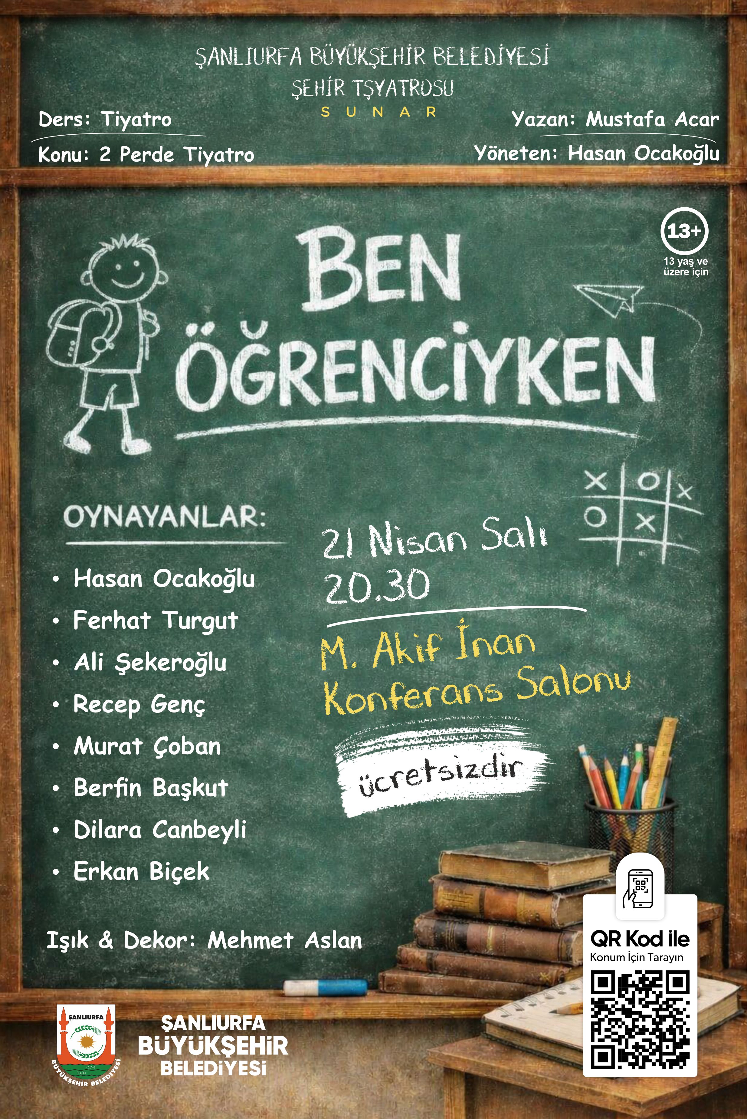 Kültürel etkinliklerine hız kesmeden devam eden Şanlıurfa Büyükşehir Belediyesi, tiyatroseverleri anlamlı bir yapımla buluşturuyor. Şehir Tiyatrosu ekibi tarafından sahneye taşınan “Ben Öğrenciyken” adlı tiyatro oyunu, izleyicileri okul yıllarına dair nostaljik ve eğlenceli bir yolculuğa çıkarmaya hazırlanıyor.