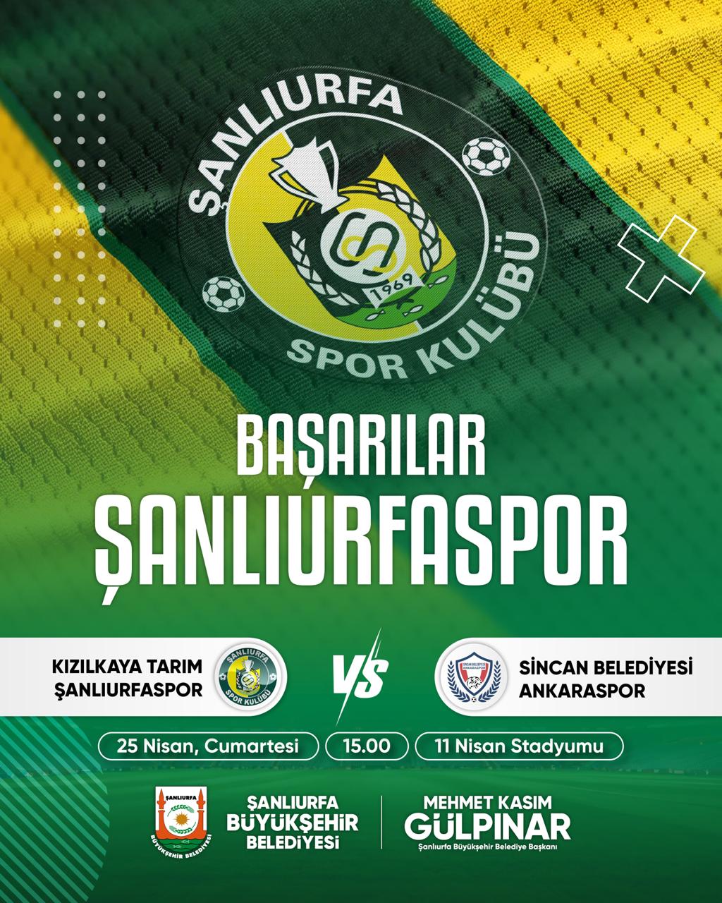 25 Nisan 2026 Cumartesi günü oynanacak mücadele, saat 15.00’te 11 Nisan Stadyumu’nda başlayacak. Taraftar desteğini arkasına alacak olan Şanlıurfaspor, sahadan 3 puanla ayrılarak üst sıralar hedefi doğrultusunda kritik bir galibiyet elde etmek istiyor.