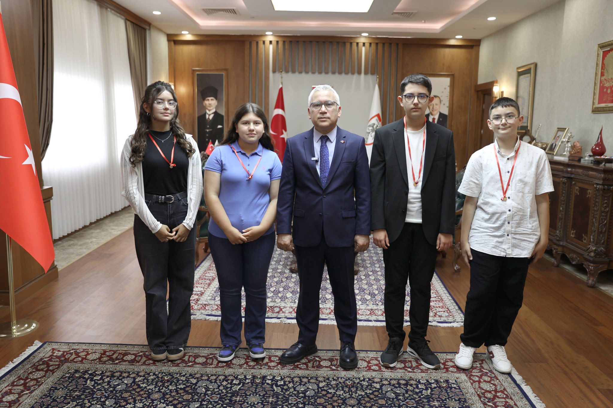 Vali Yılmaz Şimşek, 2025 LGS sınavında 500 tam puan alarak Türkiye birincileri olan öğrencileri makamında ağırladı